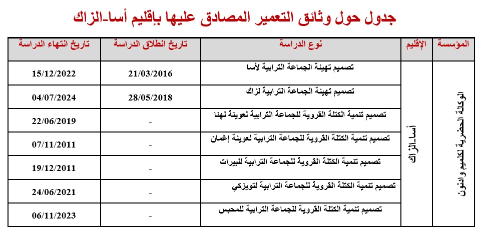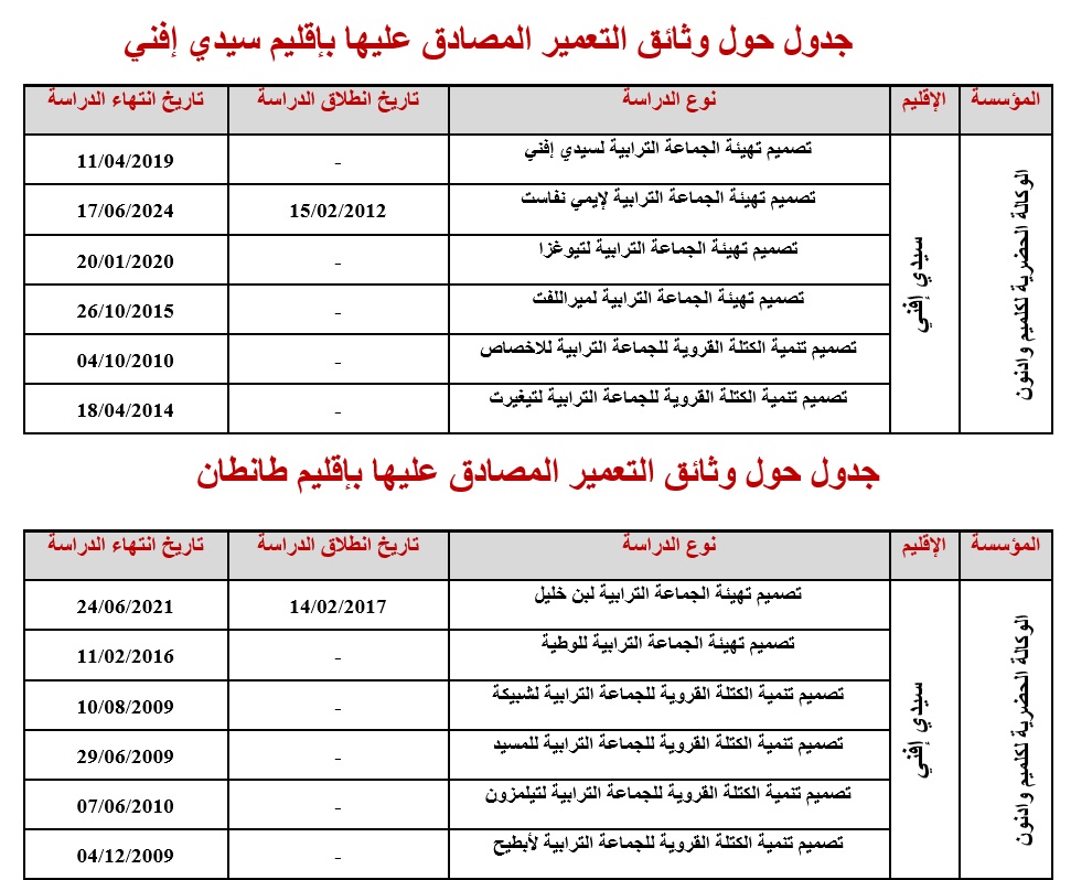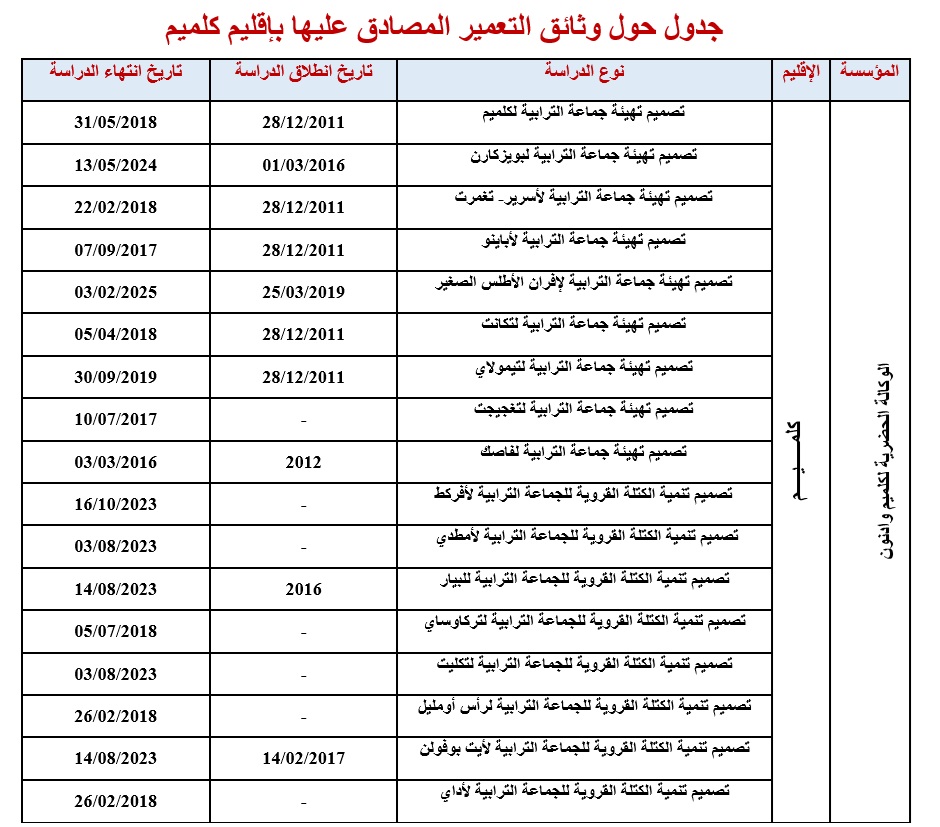 وثائق التعمير المصادق عليها بجهة كلميم واد نون